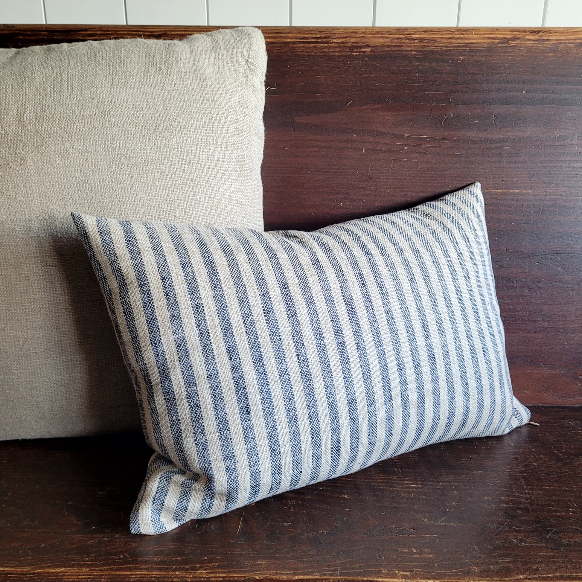 The pillow cover measures 14x22 and is fitted with a zipper closure. We recommend that you stuff it with a 16x24 feather insert. Cover is hand made, and spot clean only.